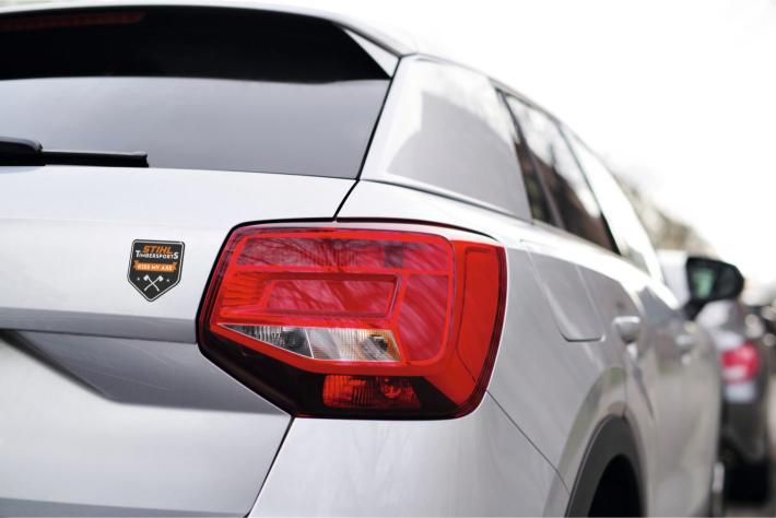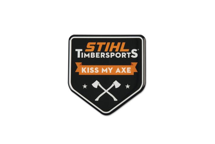 Voor echte fans: de TIMBERSPORTS® PVC autosticker! Bedrukt met het klassieke »KISS MY AXE« logo. De weerbestendige sticker van hoge kwaliteit, met reliëf, is een echte blikvanger!
