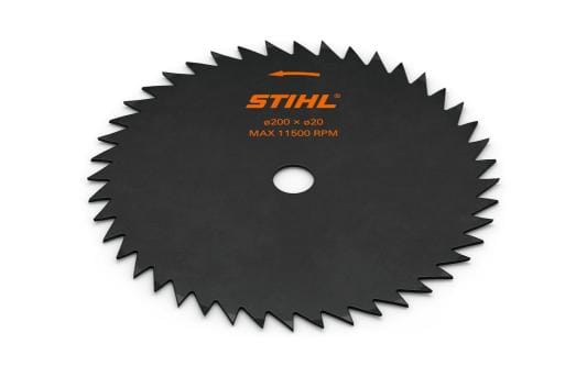 Speciaal stalen garnituur voor motorzeisen vanaf een middelzwaar vermogen. Voor verhout struikgewas en dunne boomstammen.