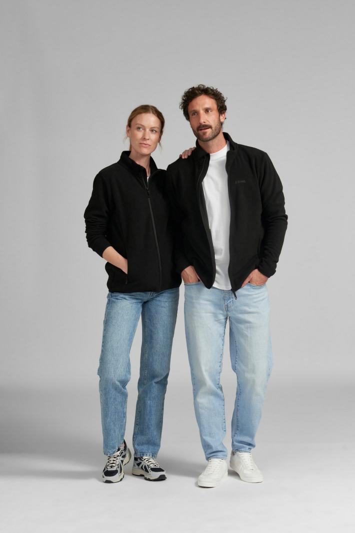 Dit zwarte uniseks fleecejack met normale pasvorm is zacht en warm. Het heeft zijzakken met een ritssluiting om je spullen mee te nemen. De biezen aan de uiteinden van de naden zijn bijzonder comfortabel. Het STIHL logo is in reliëf op de borst gedrukt en een label met het merklogo siert de zijnaad.