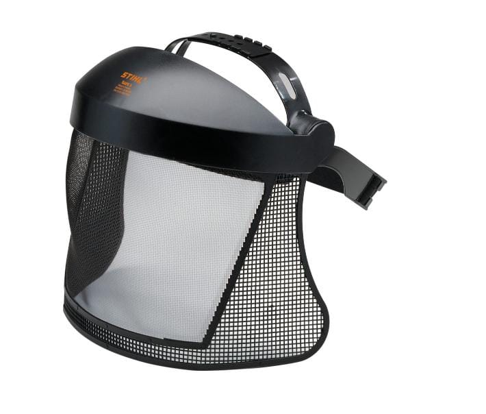 Gelaatsbeschermer met nylon rooster Twee verstelbare hoofdbanden inclusief doosje met oordopjes. Conform SNR 33, EN 352, EN 1731. Gewicht ca. 156 g.