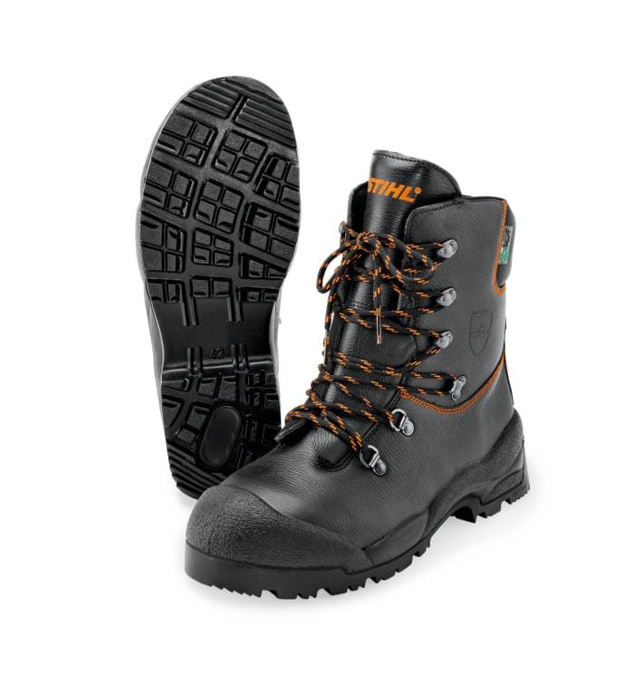 Lederen laarzen voor gebruik kettingzaag. Basismodel van hoogwaardig rundsleer. Hoog draagcomfort dankzij anti-slip buitenzool en actief ademende voering. Biedt bovendien bescherming tegen vocht, slijtage en schuren. Bescherming conform EN 17249, beschermklasse 1 (=ˆ 20 m/s) en EN 20345 S2.