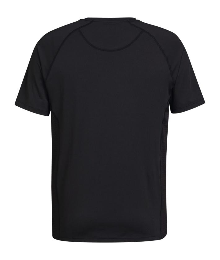Dit zwarte thermo-actieve functionele shirt met gekruiste bijlen op de elastische inzetstukken zal snel je nieuwe lievelingsstuk worden voor al jouw sportieve activiteiten. »STIHL TIMBERSPORTS ®« logo gedrukt op de borst. 86 % polyester, 14 % elastaan.