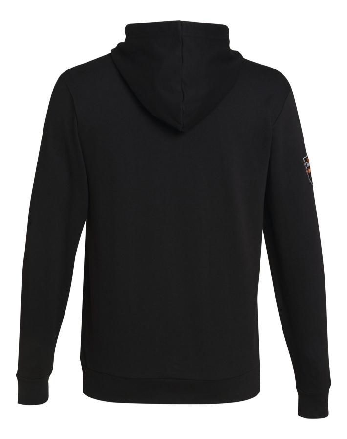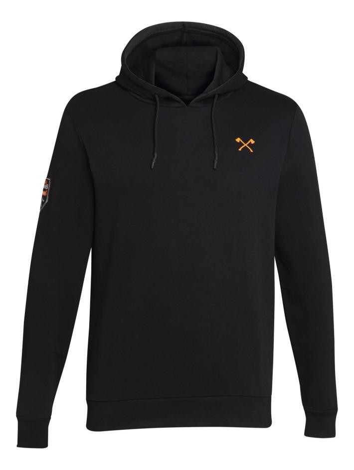 Comfortabel zwart sweatshirt met kap, trekkoord en hoogwaardige metalen oogjes. De STIHL TIMBERSPORTS® details: badge met geweven logo op de mouw en print aan de binnenkant, gekruiste bijlen op de borst in feloranje op de zwarte stof. De kap is ook versierd met een oranje lint. 80 % katoen, 20 % polyester.