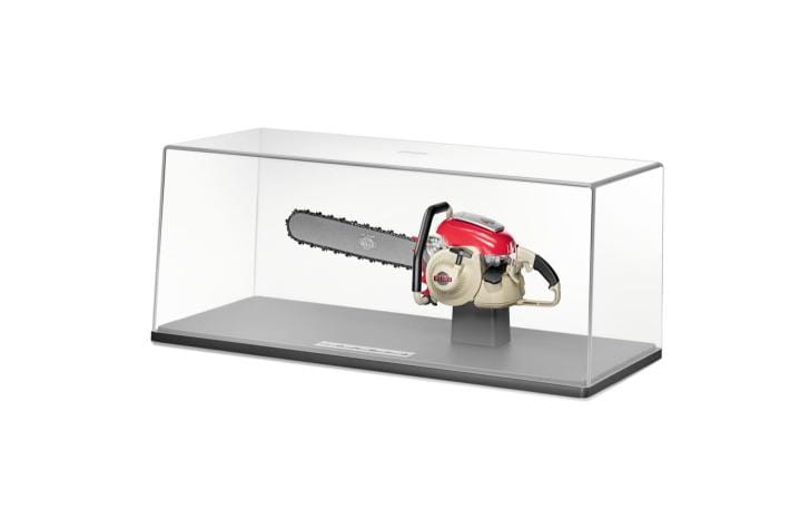 Dit verzamelobject zal het hart van elke fan sneller doen slaan. Hij is gemaakt van zinkgietwerk van Schuco, geschilderd in de originele kleuren van de CONTRA uit 1959 en op schaal 1:5. Het neemt je mee op een reis naar het verleden van STIHL. Gegoten zink met kunststof elementen.