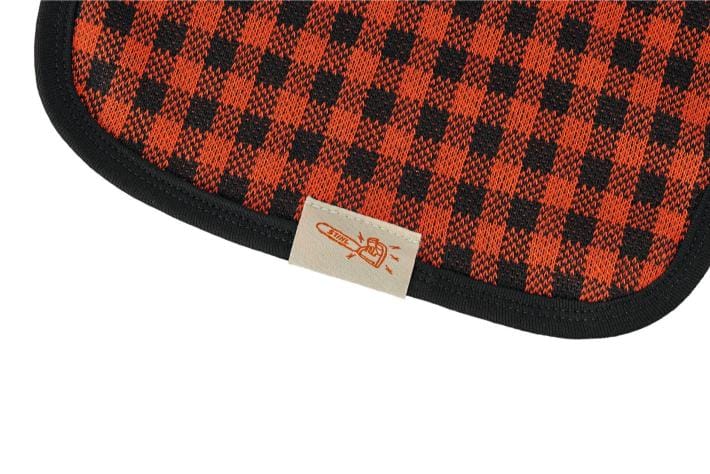 Rood en zwart geruit slabbetje met geweven STIHL label op de zijkant. Met zijn afmetingen van ongeveer 26 x 27 cm houdt het de kleertjes van je kleintje perfect schoon tijdens het eten. Verstelbaar met drie drukknopen.
