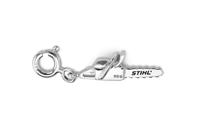 Aan een sleutelbos, is deze sleutelhanger in de vorm van een kettingzaag een uniek accessoire. De hanger, gemaakt van met rodium bekleed 925-zilver en kan met de kleine karabijnhaak worden bevestigd aan de meeste sleutels of sleutelbossen.