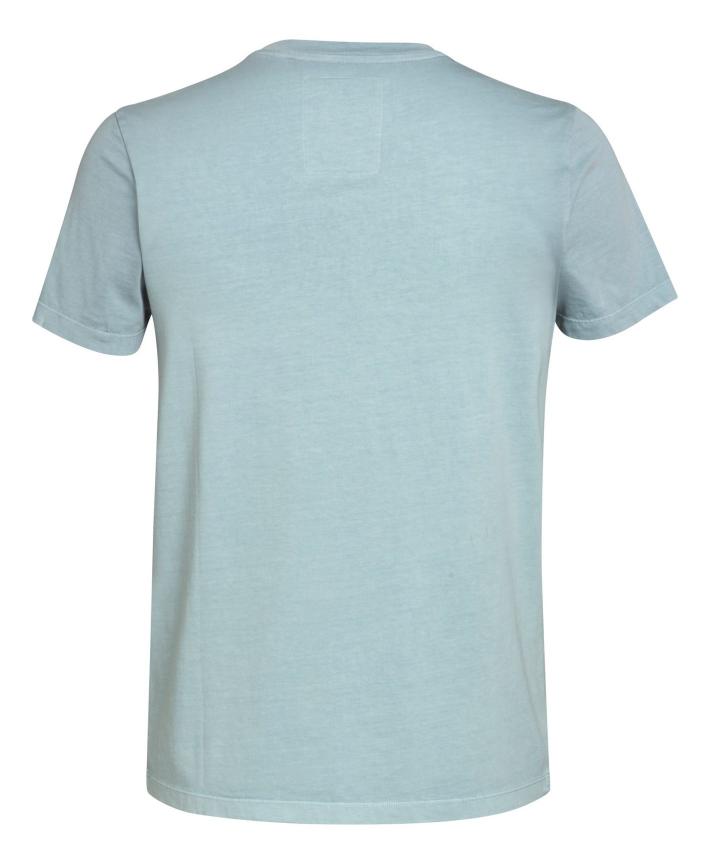 Lichtblauw katoenen T-shirt met korte mouwen en ronde hals, decoratieve kruissteek in een Garment-Dye-Finish voor een casual look. Groot »contra lightning« borduurwerk op de voorkant, »contra lightning« label binnenin in een kenmerkende vintage stijl. Casual fit.